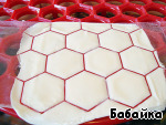 Накрываем наши "пельмени" другим ломтиком сыра, прикрываем сверху полиэтиленовой упаковкой, чтобы сыр не прилипал к скалке, и ... раскатываем скалкой.