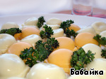 Извлекаем "пельмени" из пельменницы, выкладываем на блюдо и можем уже дегустировать, но к празднику блюдо полагается оформить...