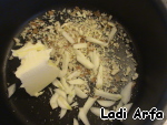 Параллельно обжарила миндаль(орехи растолкла в крошку) с чесноком(порезала соломкой ) на сливочном масле.
