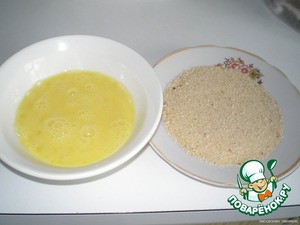 Яйцо взбить, филе обмакнуть в яйце и обвалять в панировочных сухарях.