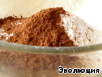 В чашку просеиваем муку и разрыхлитель, добавить соль и какао-порошок.