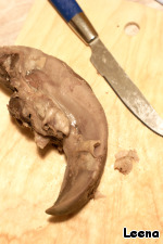 Когда язык будет готов помещаем его под струю ЛЕДЯНОЙ воды на несколько минут. Тогда шкурка очень легко снимается.