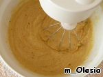 Продолжая взбивать, добавляем к яйцам и сахару масло и муку.