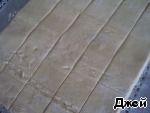 Приступаем к тесту... размораживаем, разворачиваем и нарезаем полосками шириной 2см