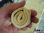 Низ закрепляем зубочистками, чтобы при выпечке "розочки" не распустились