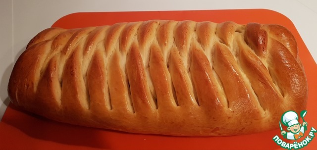 Марина,красивая коса получилась! Здорово!Начинка не выпадала из кусочка при нарезке?