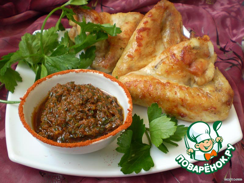 Эта смесь пряностей и трав родом из Марокко. Ее пряный аромат с восточными нотками прекрасно оттенит вкус блюд из рыбы и морепродуктов, овощных салатов. Благодаря этой приправе вы сможете просто и не хлопотно приготовить восхитительные блюда из белого мяса птицы, а соус отлично подойдет к куриным крылышкам, рыбным блюдам и овощам, жаренным на гриле. Рецепт этого блюда был размещен на сайте в 2008 году пользователем Kisya под названием Соус "Чермула" и иллюстрирован мной в рамках акции «Раскраски».