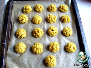 Достаем тесто, снова крошим между ладоней. Достаем формочку (я взяла коньячную рюмку). Духовку разогреваем примерно до 180 градусов. Противень застилаем пекарской бумагой. Формочку смазываем растительным маслом, насыпаем в нее крошку, чуть-чуть приминаем сверху, не сминая нижние ряды крошки, и опрокидываем на противень. Легким потряхиванием освобождаем рюмку и нежными движениями пальцев восстанавливаем форму, если что-то просыпалось.