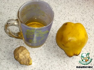 Имбирь и айву чистим, натираем на терке, добавляем лимонный сок и масло. При помощи блендера превращаем в однородную массу.