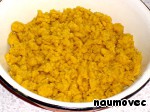 Крошим тесто между ладонями и ставим в холодильник на час.