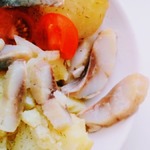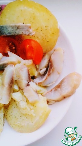 [+5]Мои муж и сын уехали к бабе-деде, а я осталась одна...почти одна...с котом... Вообщем, не стала я делать корзинок из картофеля, а сельдь заранее была по рецепту подготовлена... Поэтому просто выложила ее на отварную в мундире картошку и мне было вууууснооо) Спасибо!