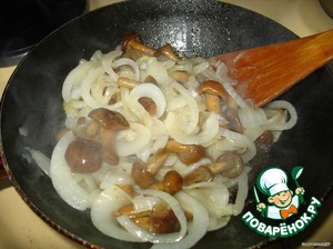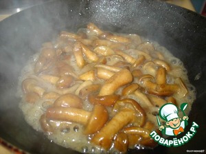 Грибы обжариваем. У меня были опята, но вообще можно любые.