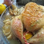 Давно хотела так запечь курицу, но все эти 40 зубчиков чеснока смущали...Барьер сломала книга "Италия: Под солнцем Тосканы", которую сейчас читаю. Думаю -так часто упоминается рецепт -надо попробовать. ПОЛУЧИЛОСЬ! Курицу под 2 кг уничтожили за два приема пищи два человека! ОЧЕНЬ ВКУСНО!