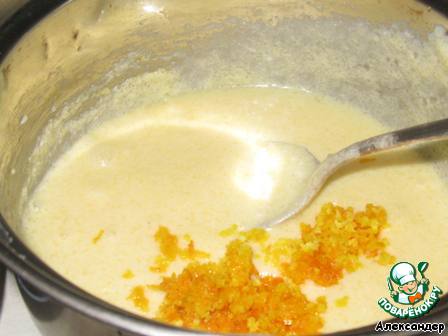 Снять цедру с одного апельсина и выжать сок. Все это отправить в тесто.