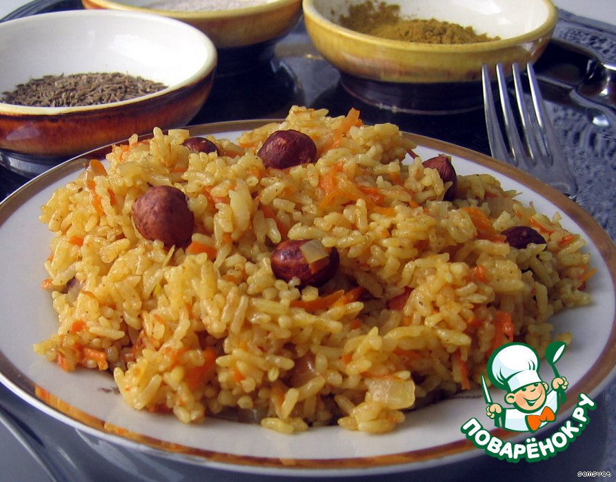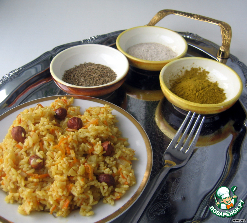 Для гурманов национальной кухни и для тех, кто хочет всегда получать ароматный рассыпчатый рис. И в будни, и в праздничные дни этот нарядный рис порадует своим ярким видом и сказочным вкусом! Рецепт этого блюда был размещeн на сайте в 2008 году пользователем lesi под названием "Индийский плов с орехами" и иллюстрирован мной в рамках акции "Раскраски".