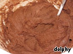 Сверху просейте муку с какао и снова тщательно перемешайте.
