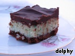 Равномерно нанесите шоколад на кокосовую начинку. Поставьте в холодильник на 20 минут перед тем, как разрезать на 12 пирожных.