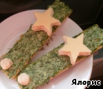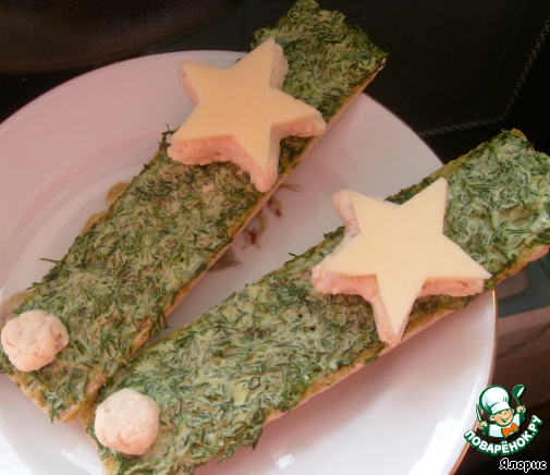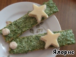• Сверху кладем курино-сырные звезды и накрываем их звездочками из сыра