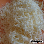 • Натираем на мелкой терке сыр (оставляя немного для украшения)