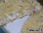 Потом на основу выложить грибы, залить их сливками, посыпать сыром и выпекать при 200 гр. 40 мин. |