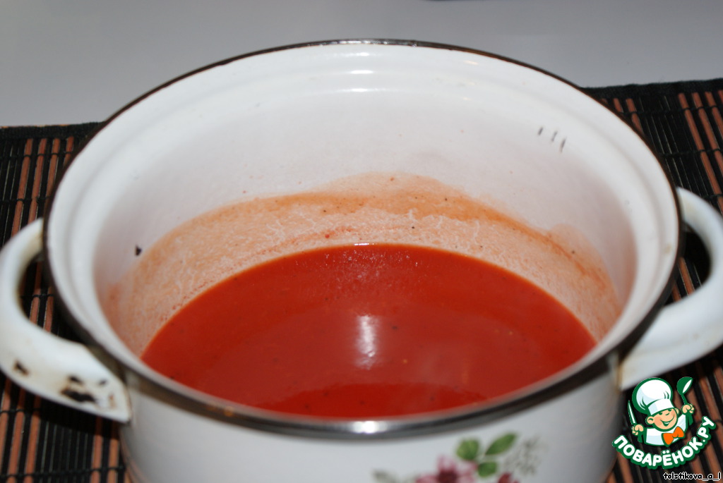 Желатин залить 0,5 стакана холодной воды и оставить на 5 мин. В сотейнике смешать томатный и лимонный сок, несколько капель соуса табаско и сахар. Приправить солью и перцем, поставить на огонь и, помешивая, довести до кипения.