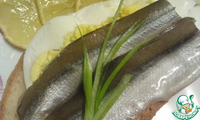 "Возьмите кусочек хлеба, обжарьте его до хрустящей корочки, разрежьте вареной яйцо на 4 части. Одну частичку положите на хлеб, а сверху соленую кильку или мойву. Отличная закуска к пиву или крепким спиртным напиткам".