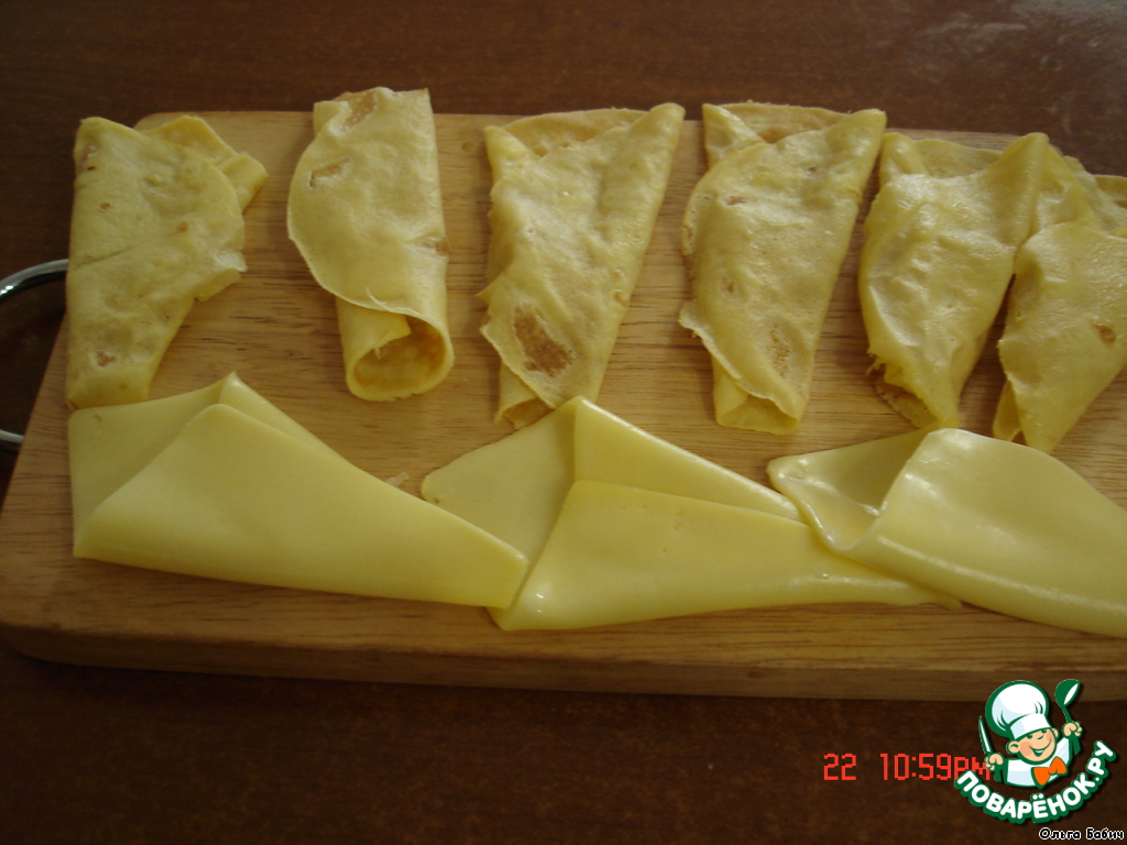 Пожарить на сухой сковороде блинчики (наливая по 1 ст. л. теста).