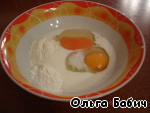 Взбить венчиком яйца, муку, крахмал, соль, молоко.