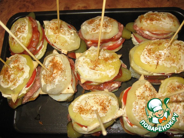 Сегодня утром после очередного просмотра рекламы Макдональдса мне в голову пришла замечательная идея, причем результат превзошел все ожидания. Все любители картошечки по-французски думаю оценят мое творение, так называемый картофельный даблчизбургер. Ну очеееень....