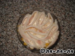 Готовим заправку для салата. Смешиваем до однородной консистенции масло, лимонный сок, горчицу, соль и перец (по вкусу), добавляем сметану. Заправка готова! Из данного количества ингредиентов получается около 200г заправки.