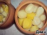 Первым делом, в горшочки отправляем картошечку (ЦЕЛИКОМ - НЕ резать!!!).