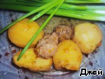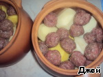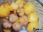 Затем, из фарша крутим не большие кругляши и отправляем к картошечке.