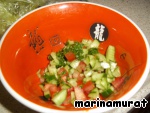 Огурец и помидорки нарезать очень мелко, укроп измельчить...