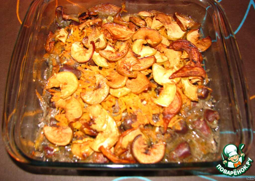 2 вариант: после приготовления, все перемешать, дать настояться. тогда яблочки вбирают в себя влагу из других ингредиентов. по виду все это будет как салат. кстати, на второй день, блюдо еще вкуснее.