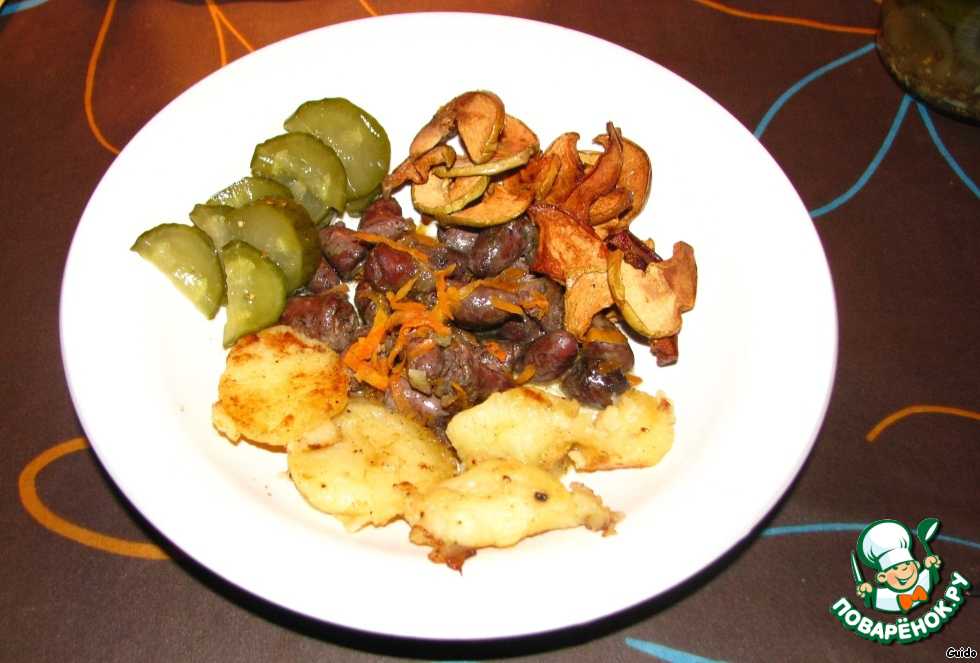 Сухофрукты сок не дают, чем и радуют. Прелесть их - в кисленьком вкусе. В сочетании с сердечками - оригинально и вкусно. -