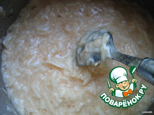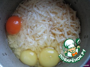 Добавить к сыру 3-4 яйца (у меня на фото 3 яйца. Я потом ещё одно добавила, т.к. густовато получалось).