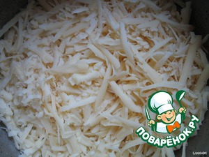 Пока тесто поднимается, потереть любой сыр твердых сортов на крупной терке. -