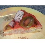 Для пропитки смешиваем 50 гр кипячёной воды и 2 ст.л. любого фруктового сиропа. Совсем немного пропитаем корж и срезанный верх, выкладываем крем на дно коржа.