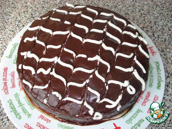 Покрываем торт шоколадной глазурью.