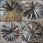 Первым слоем кладем лук, вторым - кладем рыбу в виде цветка, хвостиками в середину (у меня хамси была маленькая, поэтому я еще доложила по бокам). -