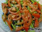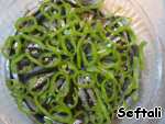 Третий слой: посыпаем черным и красным перцем, посыпаем мелко нарезанным чесноком и кладем перец.