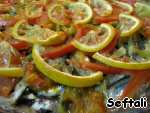 Пятый слой: кладем лимон и поливаем все оливковым маслом.