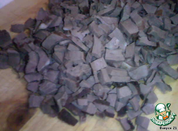 Слоеный салат с говяжьим сердцем