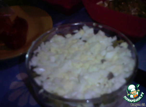 Рецепт «Слоеный салат с говяжьим сердцем»: