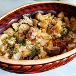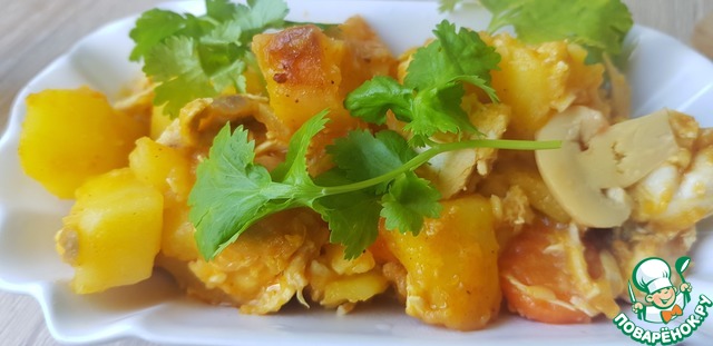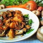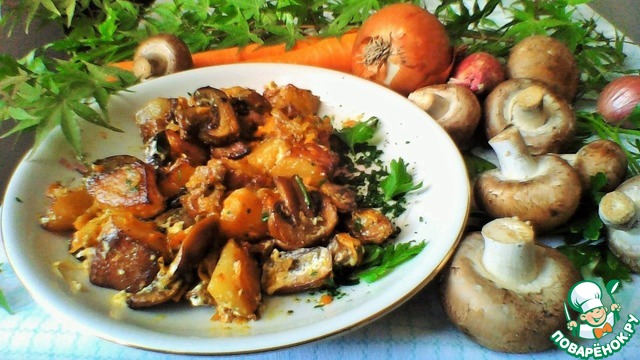 Тушеный картофель с мясом, грибами и овощами