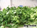- Зелень (укроп, петрушка, лук – я брала большой пучок ассорти) — 120 г