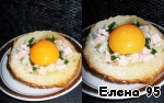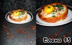 Разложите начинку в половинки булочек, посыпьте мелко нарубленной зеленью. Сверху выпустите яйца.