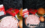 Колбасу (ветчину) и огурец нарезать кубиками, заправить майонезом, перемешать.