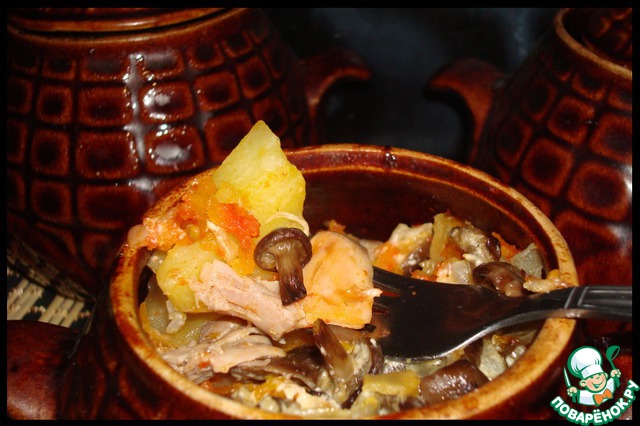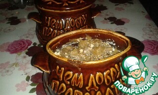 2) Правильно расчитайте соль на свой вкус.(я немного посолил лук и марковь во время обжарки, немного мясо, и на 4 горшочка вместо универсальной приправы положил половинку бульонного кубика - для меня оказалось совсем не солёным);