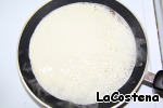 На горячую блинную сковородку нальем тесто и испечем блинчики.